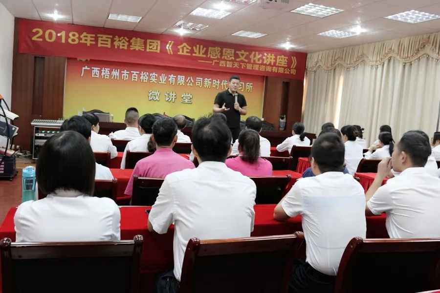 最后公司總經(jīng)理曾晏來發(fā)表感言:在百裕集團這個平臺上,我們在增長著閱歷,豐富著自我,實現(xiàn)著人生的價值;在這個平臺上,我們用激情點燃著理想,用薪酬支配著生活。因此,我們應(yīng)該感謝企業(yè),感謝企業(yè)培養(yǎng)我們,感謝企業(yè),讓我們成長,感謝企業(yè)給予我們一片展示自我的天地,感恩就要有責(zé)任,讓我們立足本質(zhì),踐行“誠信、專業(yè)、創(chuàng)新、高效”的公司文化理念,從一點一滴做起,從身邊事情做起,常懷感恩之心,為全力實現(xiàn)公司又好又快和諧發(fā)展發(fā)一份光、散一份熱!感謝導(dǎo)師帶來的精彩教育講座,通過感恩培訓(xùn)講座,讓我們從活動中體驗感恩,并回歸現(xiàn)實生活,讓大家在不知不覺中受到教育,使其知、情、意、行在情理交融中實現(xiàn)自我完善,最終回報父母、回報社會、回報企業(yè)。